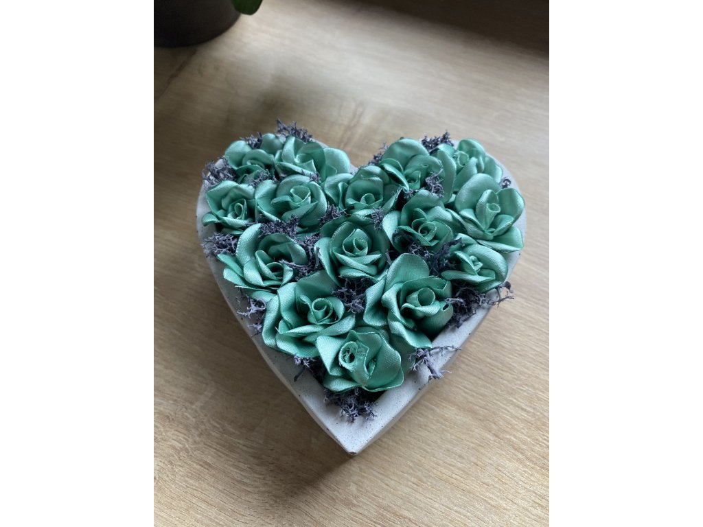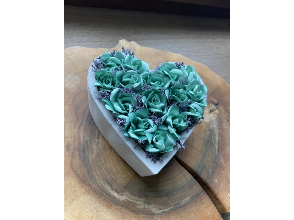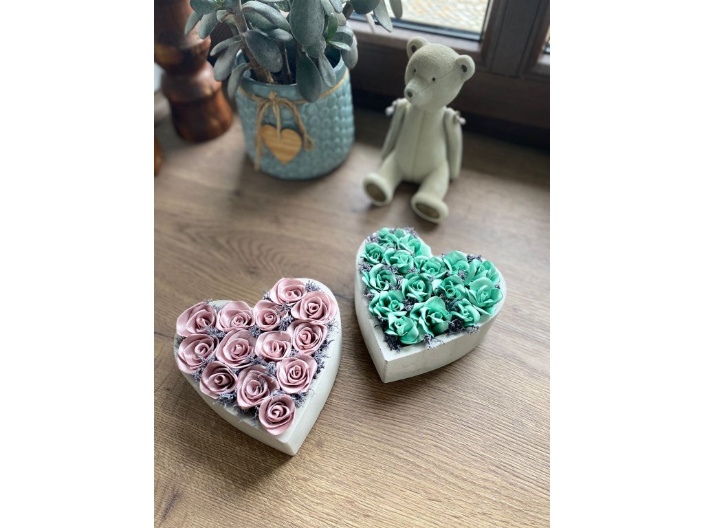 - Obsah balení: 1 kus (betonové srdce, aranžmá z růžiček a přízdob)