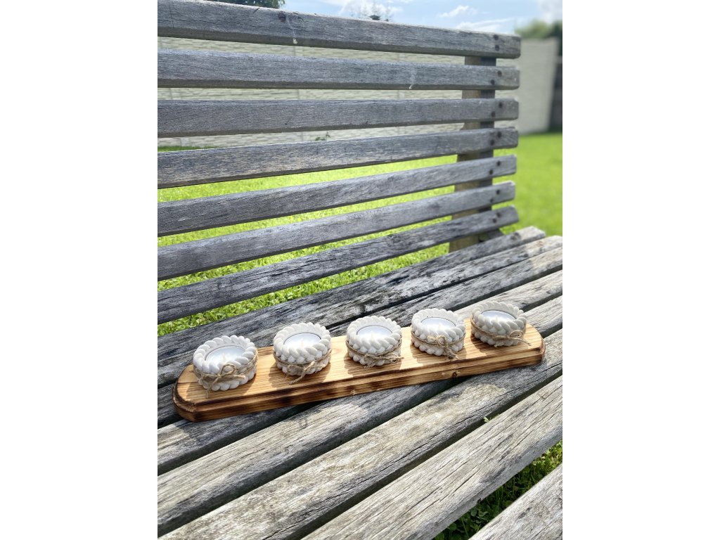 - Materiál: dřevo, beton, čajové svíčky, přírodní provázek