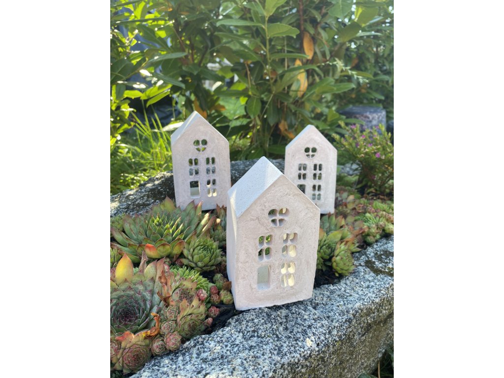 Betonový domeček na čajovou svíčku