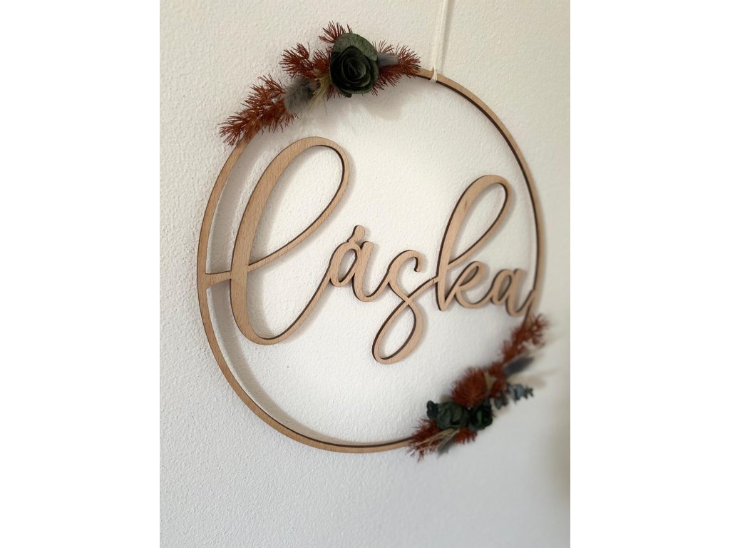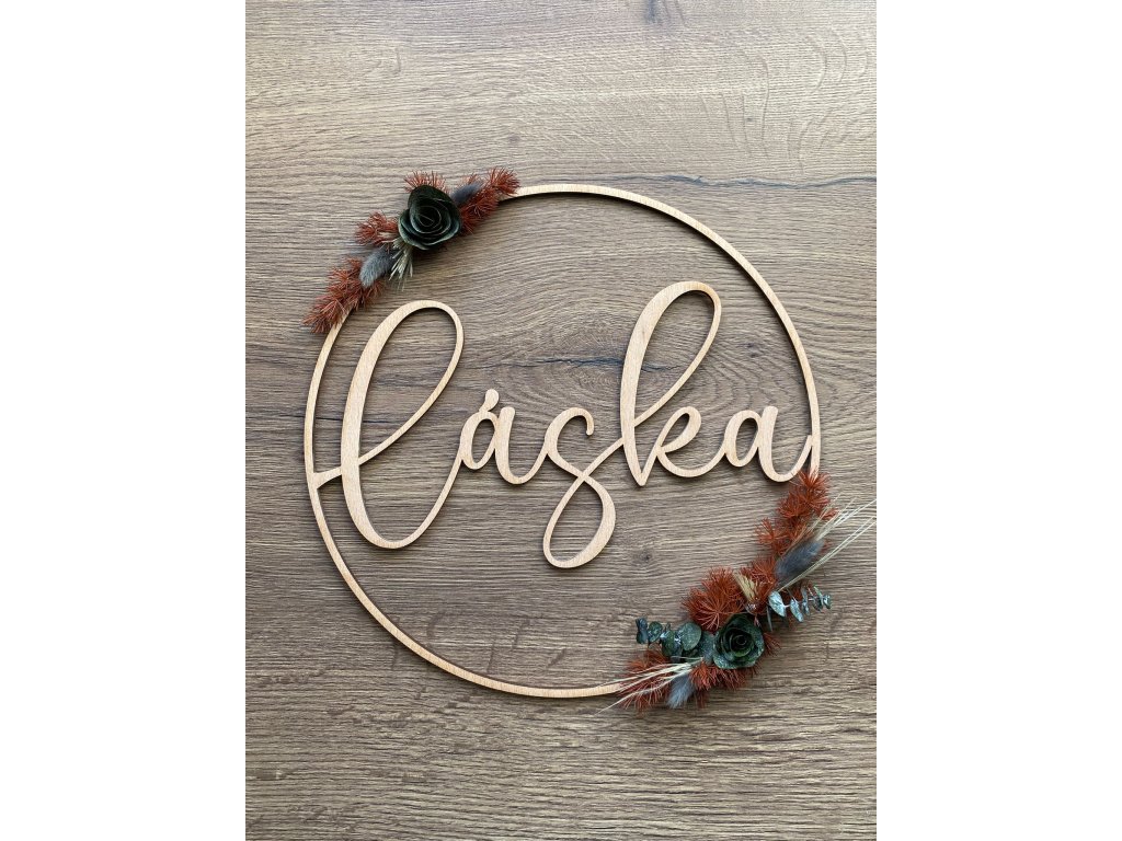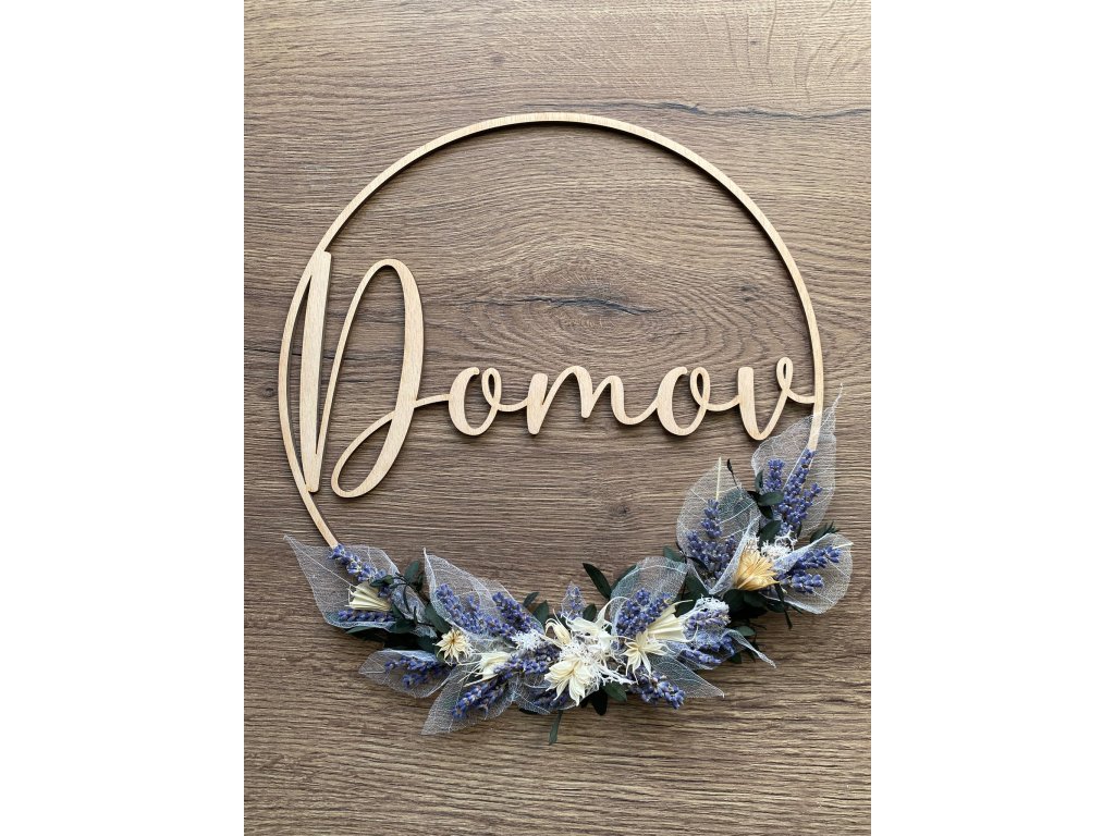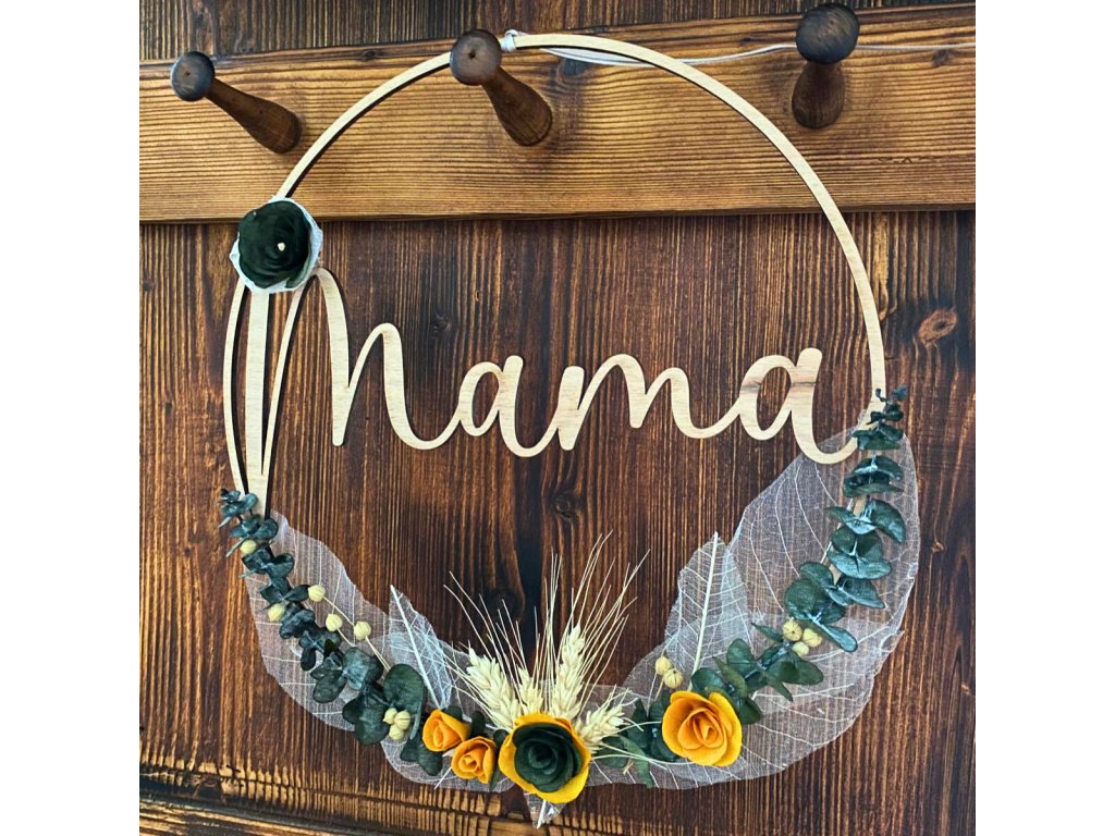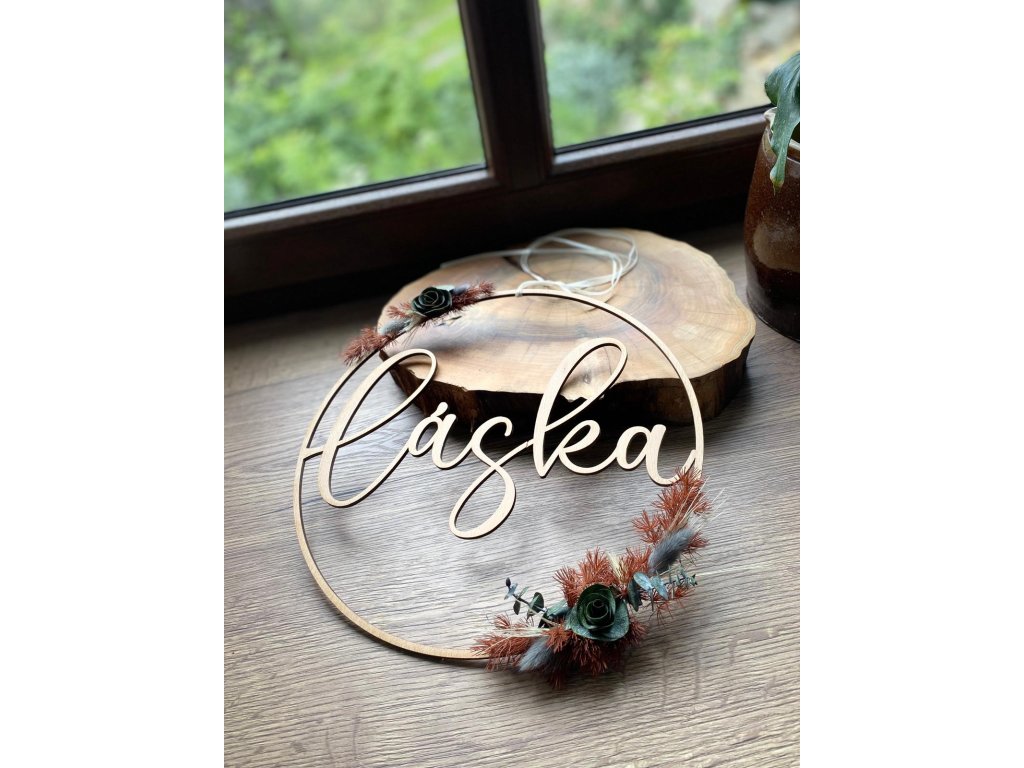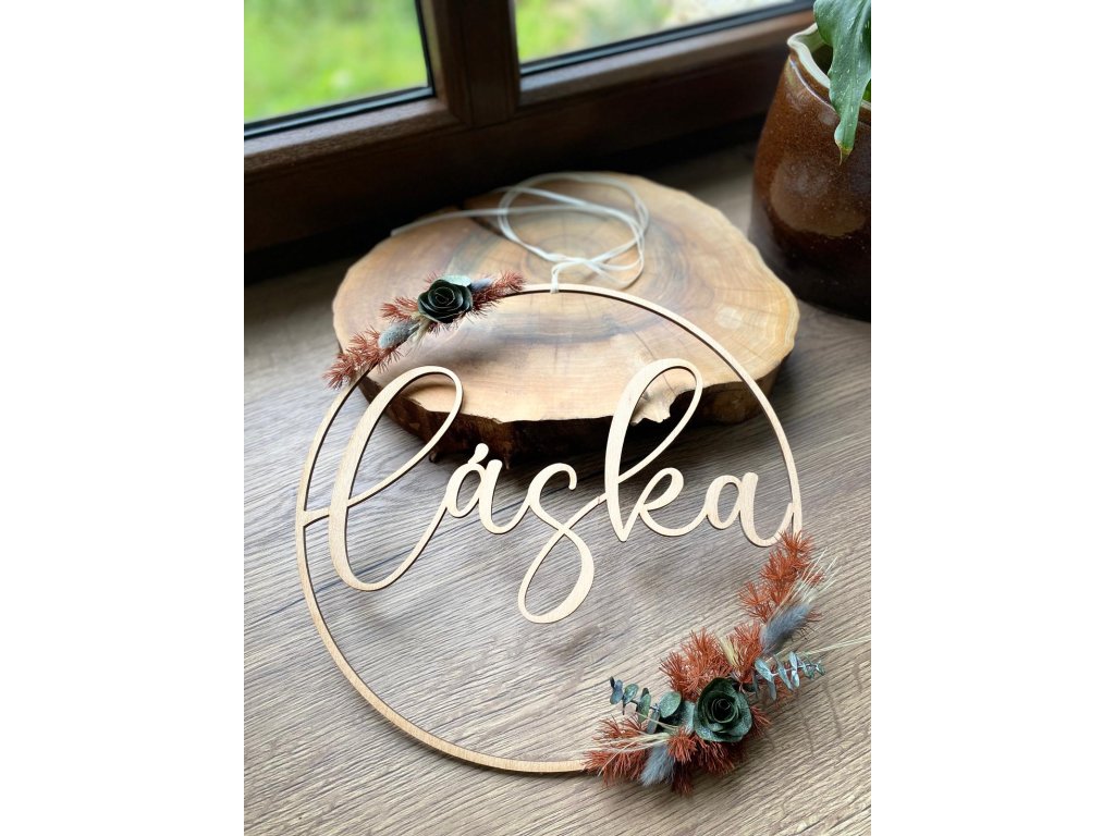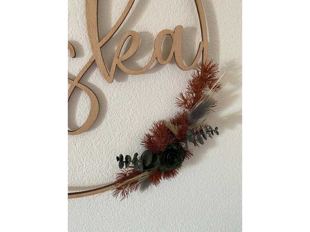 - Materiál: dřevo, sušené květy, stuha