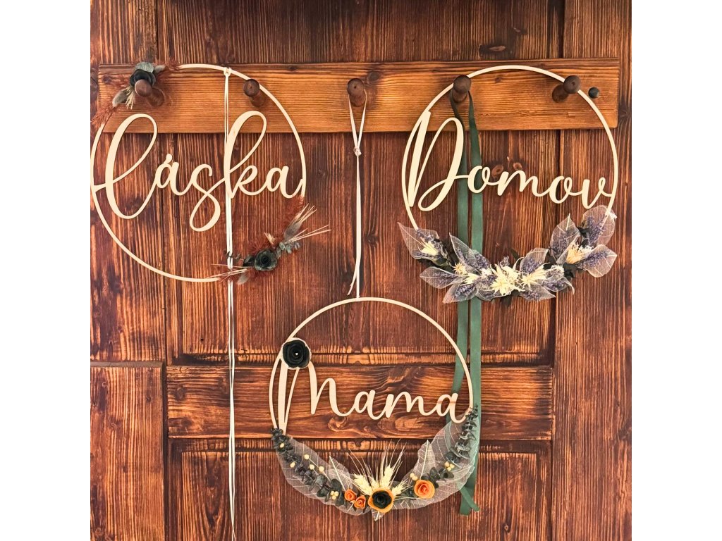 Dřevěný věnec - Láska, Domov, Mama