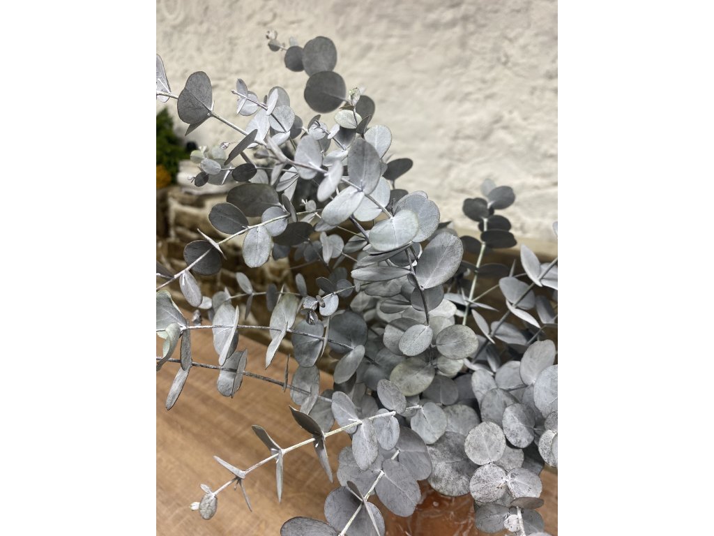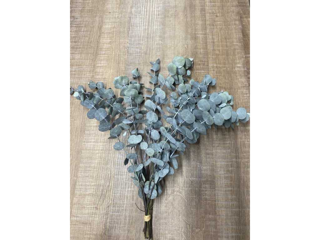 Stabilizovaný eukalyptus s drobnými, kulatými lístky v jemné šedozelené barvě.Vydrží krásný mnoho měsíců bez zálivky a opadu. Ideální do věnců, kytic, dekorací i samostatně do vázy. Každý svazek je ručně vázaný v mé dílně a prošel pečlivou stabilizací, díky které si uchovává barvu i pružnost.