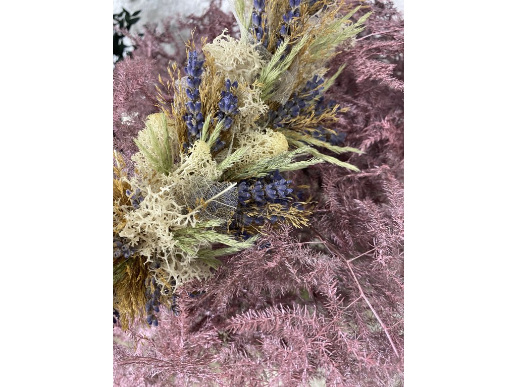 Levandule doplněná o traviny a stabilizovaný mech vytváří něžnou dekoraci, která vnese do vašeho domova lehkost a harmonii přírody. Každý kousek je výsledkem pečlivé ruční práce.