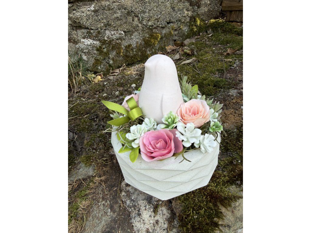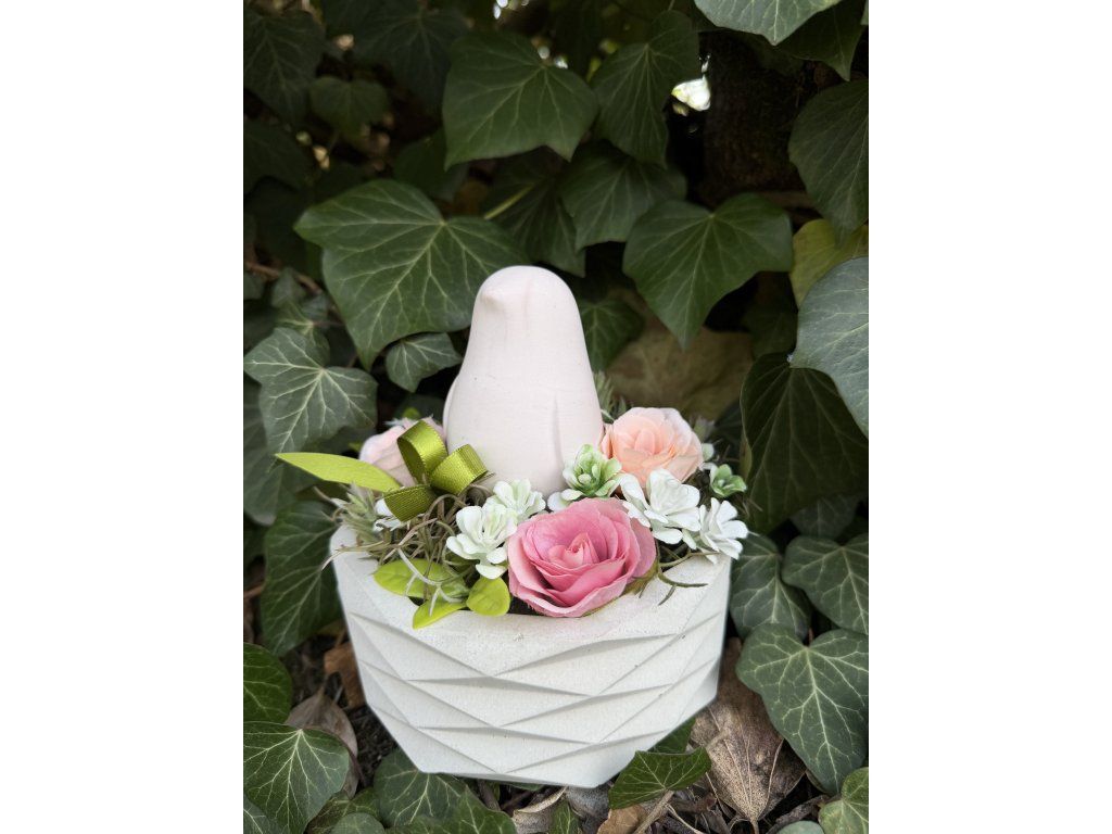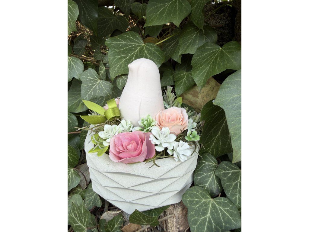 Vzpomínka na naše blízké by měla být doprovázena krásou, která neuvadá. Tato dekorace s motivem ptáčka v betonové misce je vytvořena pro ty, kteří hledají alternativu k běžným plastovým ozdobám a preferují poctivou ruční práci a vkusný design.