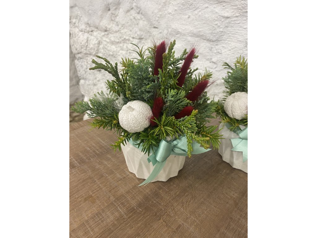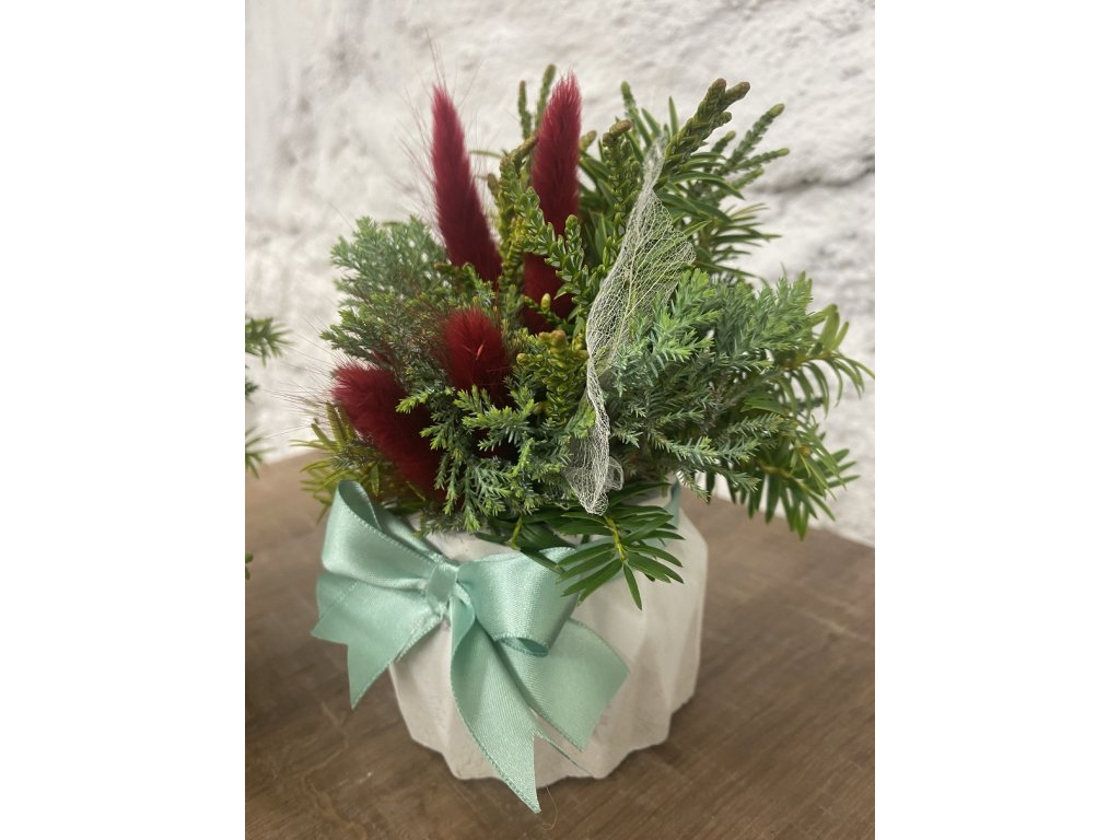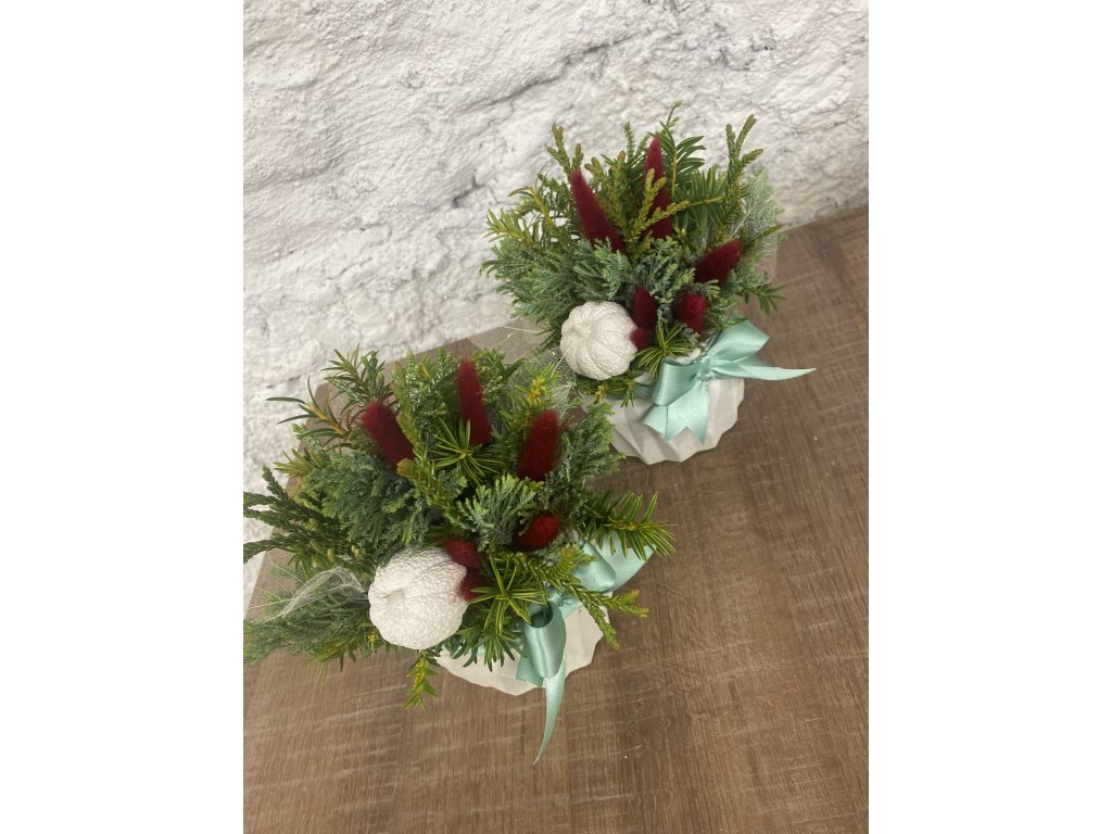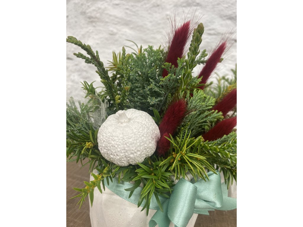 - Materiál: beton, zeleň, zaječí ocásek, stuha, piaflor