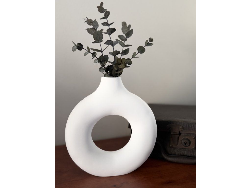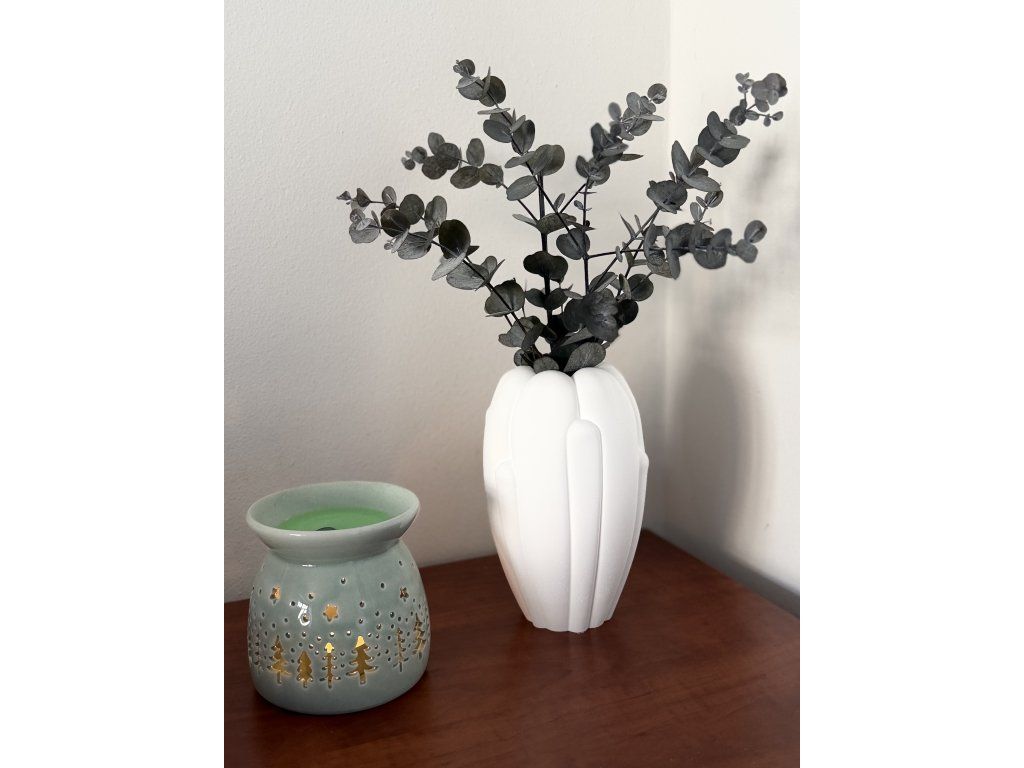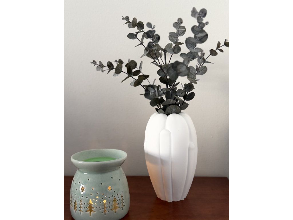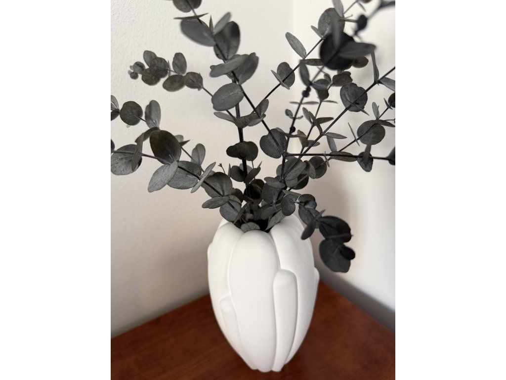 Na fotografii je váza doplněna stabilizovaným eukalyptem pro inspiraci aranžmá (není součástí produktu).