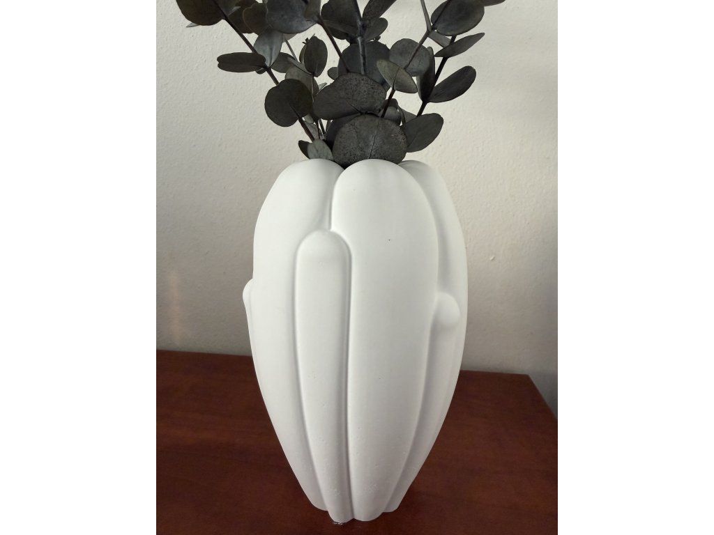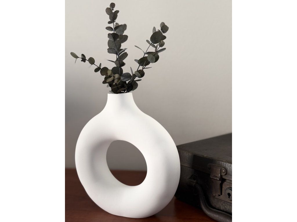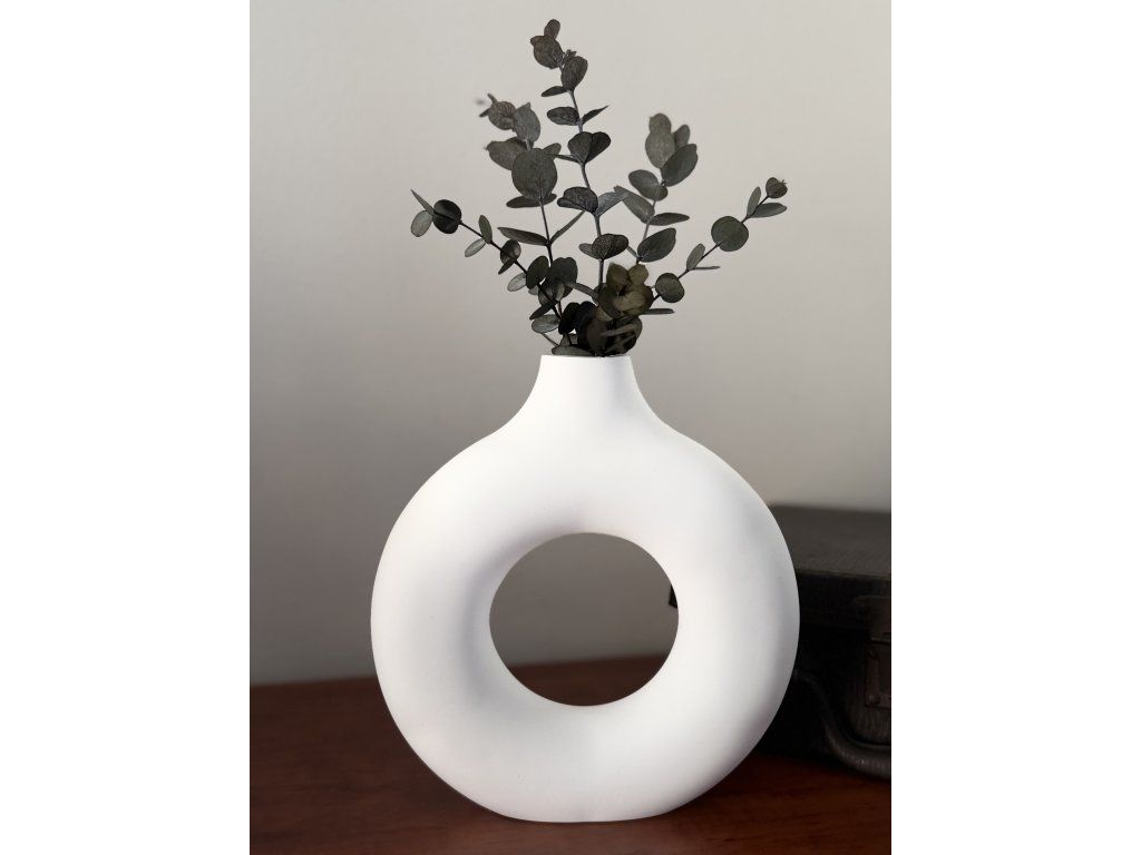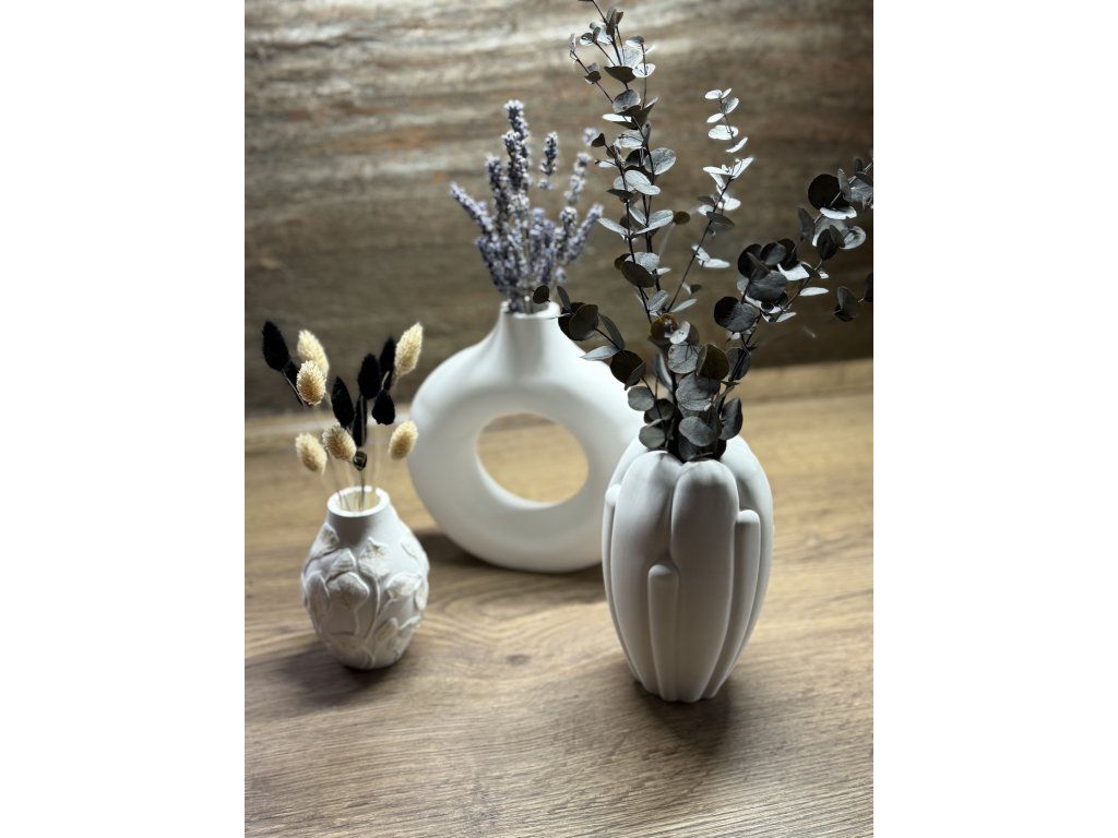 Na fotografii je váza doplněna stabilizovaným eukalyptem pro inspiraci aranžmá (není součástí produktu).