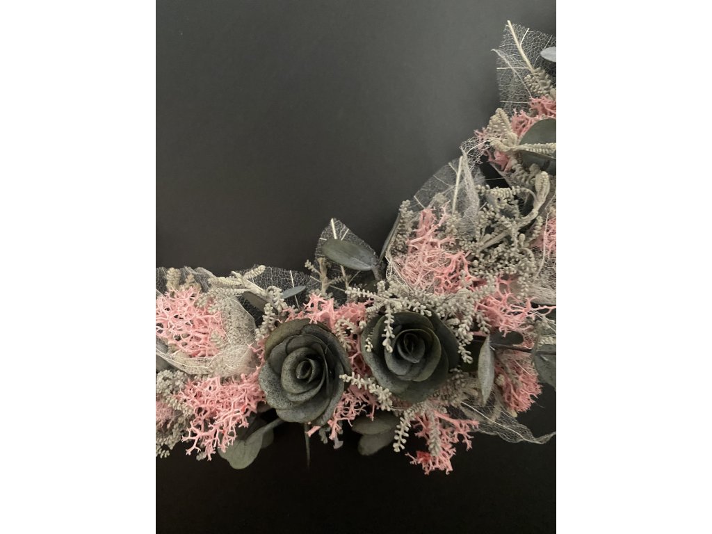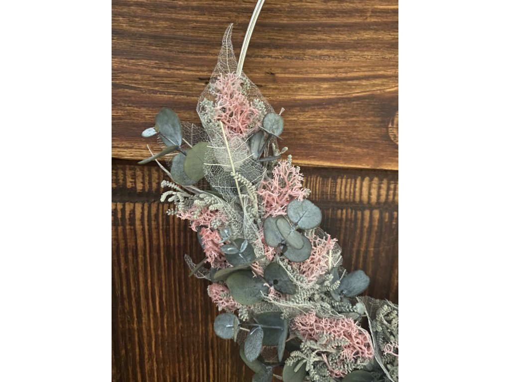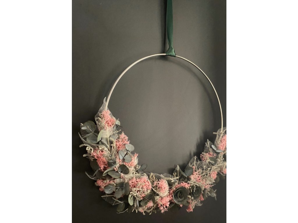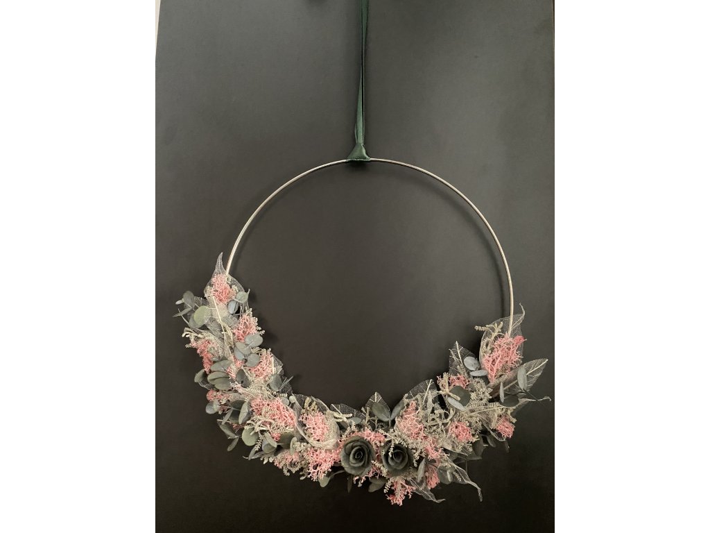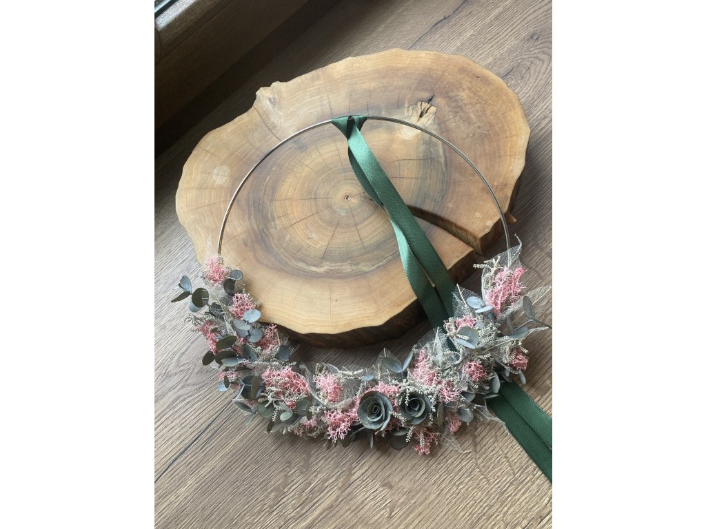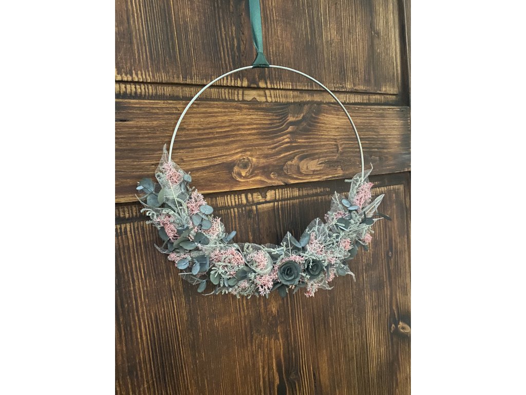 - Materiál: kruhová obruč, sušina, stabilizovaný eukalyptus, stabilizovaný mech, stuha
