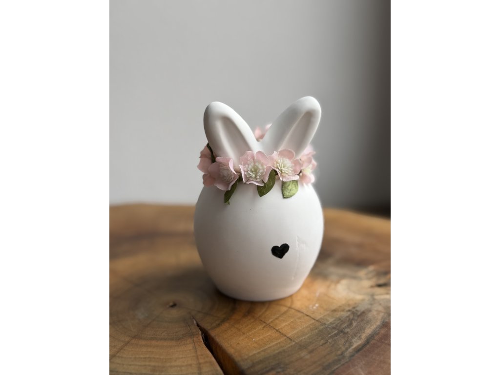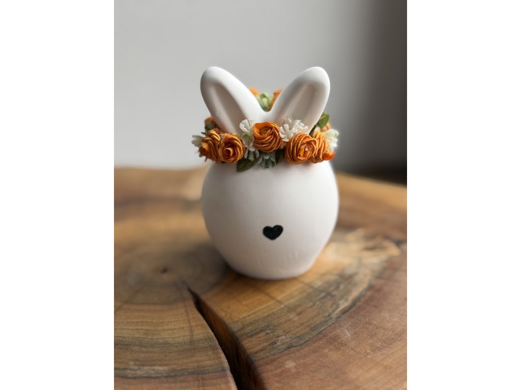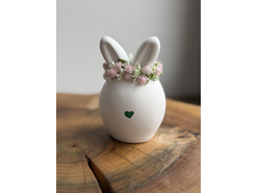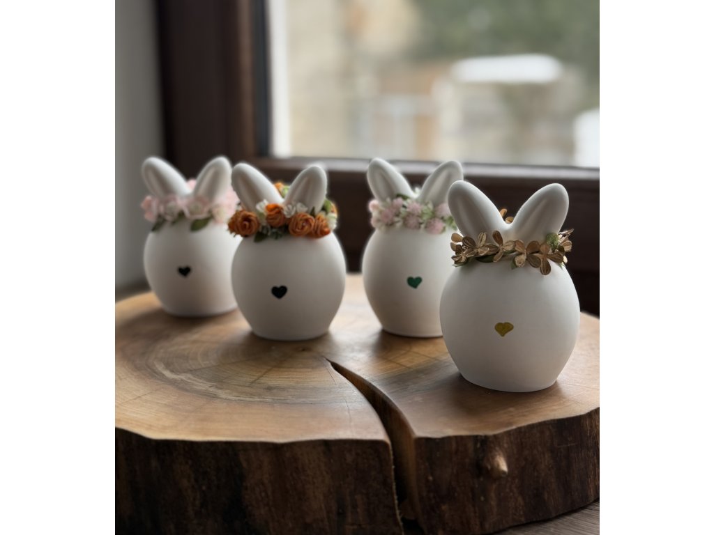 Dekorace působí hravě, ale zároveň velmi čistě a přirozeně. Hodí se jako jarní a velikonoční doplněk do interiéru nebo jako jemný dárek.