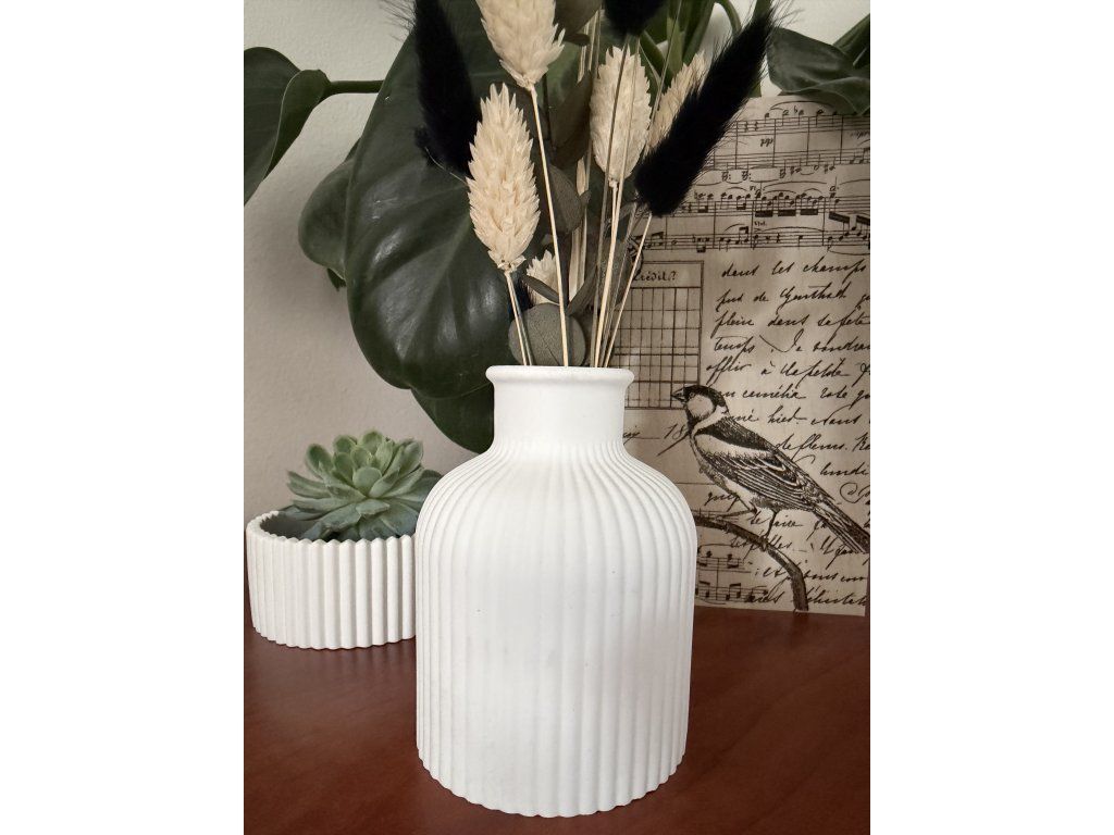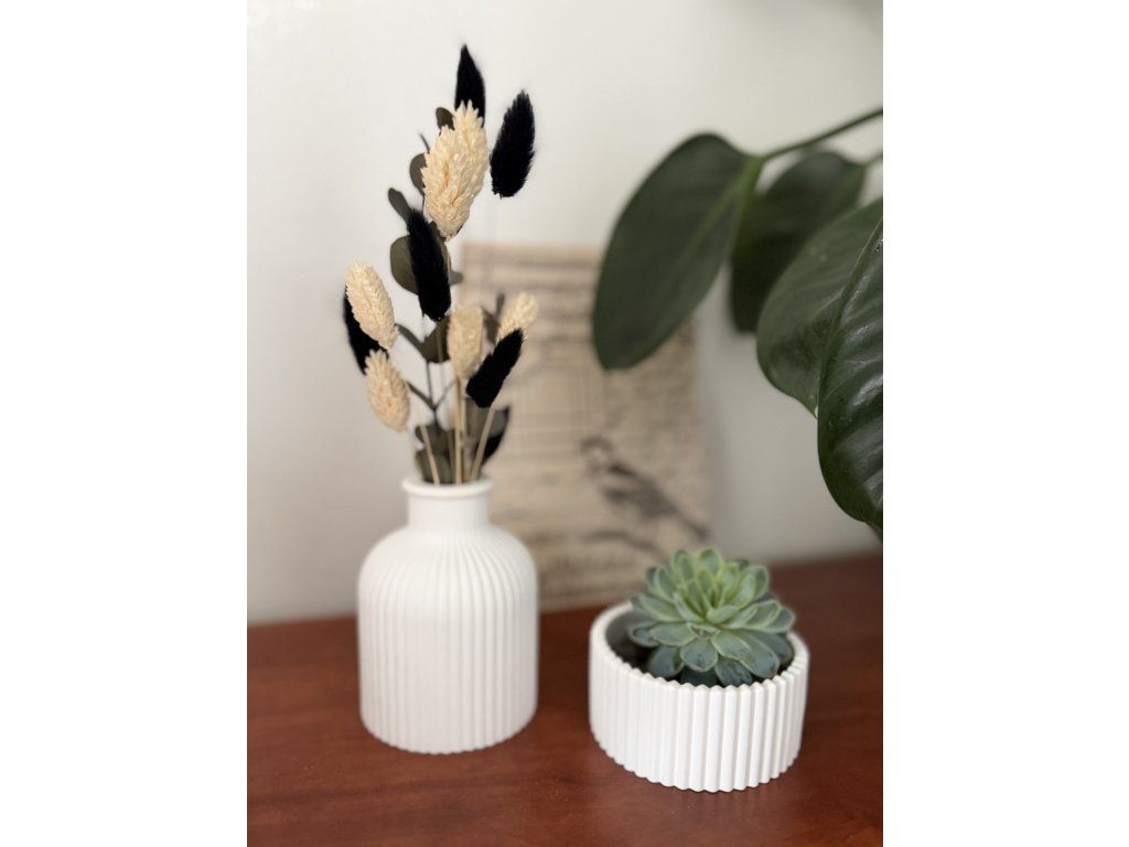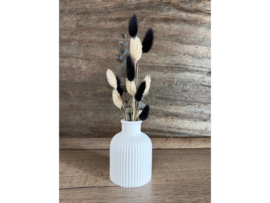 Jemný tvar a struktura vytváří dekoraci, která působí přirozeně, klidně a nadčasově. Velikost vázičky je ideální pro drobné aranžmá ze sušených trav, květin nebo eukalyptu.
